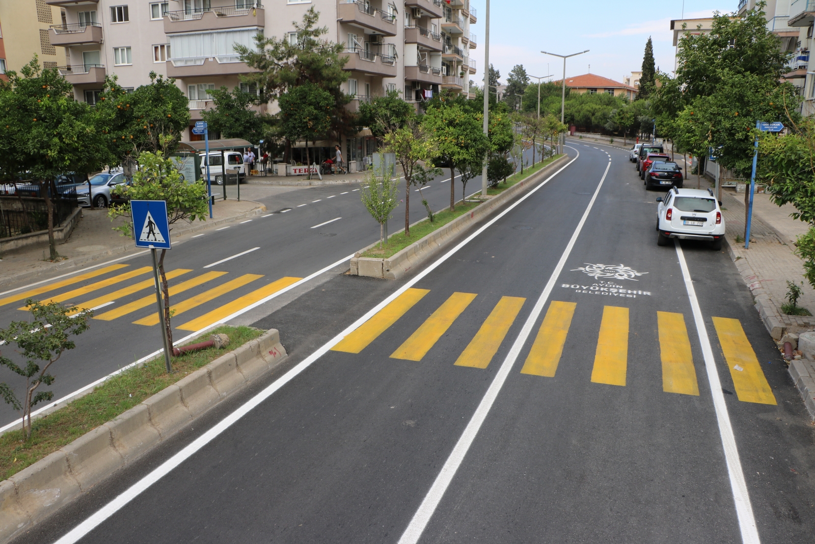 Aydın’ın en işlek caddelerinden biri olan yolda asfalt çalışmalarını tamamlayan ekipler, Aydın Büyükşehir Belediyesi’nin logosunu ve yol çizgilerini boyayarak güzel bir görünüme kavuşturdu.
