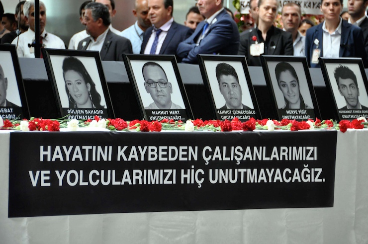 Atatürk Havalimanı’ndaki bombalı saldırılarda hayatını kaybeden 15 havalimanı personeli için anma töreni yapıldı.