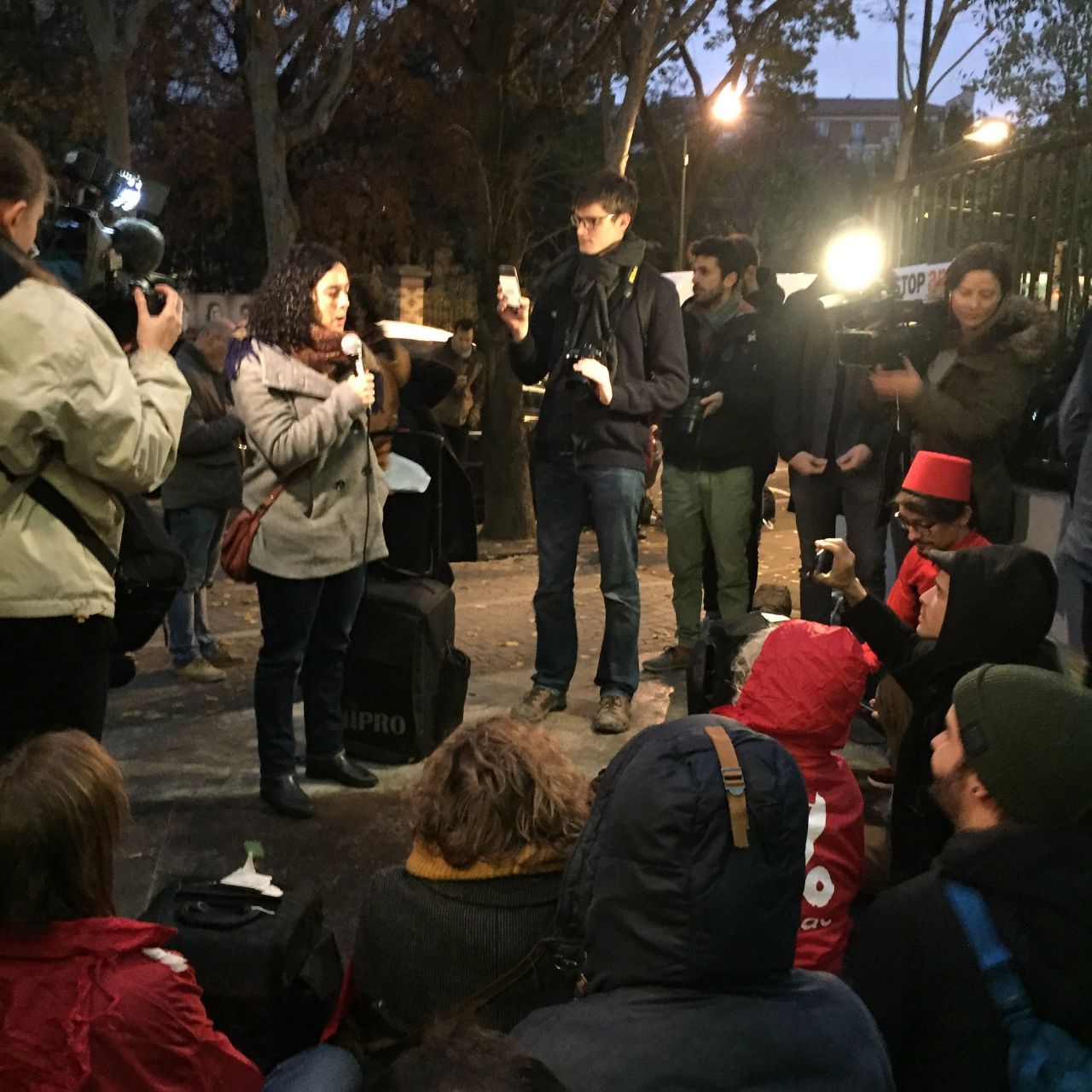 Paris’in iş bölgesi olarak bilinen La Defense’da da 40 kadar gencin büyük bir alışveriş merkezinin kapısında insan zinciri kurarak geçişi engellemeye çalıştığı belirtildi. Merkezin girişine, ‘Kapitalizmi yakalım, benzini değil’ yazılı dev bir afiş asıldı.
