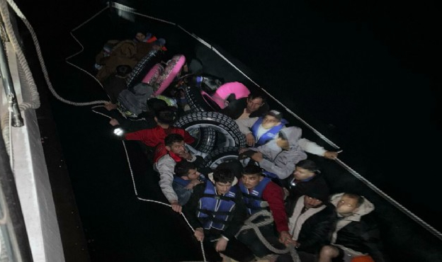 Sahil Güvenlik Komutanlığı'na, 22 Nisan'da saat 02.20'de Bodrum açıklarında lastik bot içerisinde kaçak göçmen olduğu bilgisi geldi. Harekete geçen ekipler, lastik botla Yunan adalarına geçmeye çalışan 9'u çocuk, 23 kaçak göçmeni yakaladı. Kıyıya çıkarılan kaçak göçmenler, Muğla İl Göç İdaresi Müdürlüğü'ne teslim edildi. (DHA)