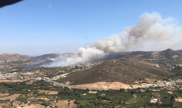 Rüzgara ve arazinin sarp olmasına rağmen ekiplerin yangını kontrol altına alma çalışması sürüyor.