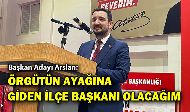 Kayyum sürecine tepki gösteren Arslan, "Sorunlara kafa yormamı lazımken gündem CHP’ ye kayyum gelecek mi gelmeyecek mi? Babamı bile kayyum atasalar Atatürk’ün partisini Kayyuma yönettirmeyiz tam karşısında dururuz. Adaylığa karar verirken kimseye güvenmedim. Ben sadece eğilmez bükülmez örgütümüze sırtımı yasladım. Ben sizin evladınızım. Partimize ve ülkemize karşı kurulan tuzakları bozmak için bu göreve adayım. Bu benim ve arkadaşlarımın yolu, devrimcilerin yoludur. Bizim yolumuz Atatürk’ün yoldur. Her beraber 2 adaylı yarış içindeyiz. Bizim birbirimizden fakrımız yok. Çok kıymet verdiğim değerli ağabeyim ile bu salonda yarışmak ve sizlerin teveccühünü beklemek benim en büyük gururum. BU örgüt birbirinden ayrışmadan, buralarda ve sokaklarda mücadele eden emekçilerinin omzunda duruyor. Bunu bilen kardeşiniz olarak diyorum ki; Siz teveccüh gösteriri ve ben ilçe başkanı olursam CHP’nin tüm kadro tercihlerini belediye başkanlarını, milletvekilleri, belediye meclis üyelerinin yani tüm kadroların önseçim ile belirlenmesi için sonuna kadar mücadele edeceğim. Sadece örgütün tecelli etmesi yetmez. Bizim önce sizlere bu partinin sonsuz güveni ve inancı olmalı. CHP’liler asla baskı altına alınamaz. Asla ve asla boyun eğdirilemez" diye konuştu.