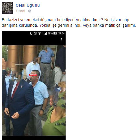 Toplantıya katılan CHP üyesi Celal Uğrulu; tacizci olarak adlandırdığı kişiyi facebook sayfasında fotoğraflarını yorumlayarak yayımladı!