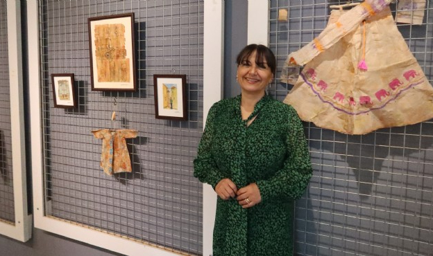 Çay poşetlerini ileri dönüştürerek kullandığı materyalin dokusunu derinleştirdiğini ve yaptığı tasarımların üzerine eski sandıklardan çıkma oyalar ve nakışlarla süslemeler yaptığını söyleyen Sanatçı Dilek Karaçayır Özer, resimlerinde ve tasarımlarında ağırlıklı olarak kadın üzerine çalışmayı sevdiğini, doğu esintisinin ve yalnızlığın izlendiği çalışmalara gösterilen ilgiden memnuniyet duyduğunu söyledi.