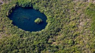Yucatan bölgesindeki Quintana Roo'da suyla dolmuş bir obruk