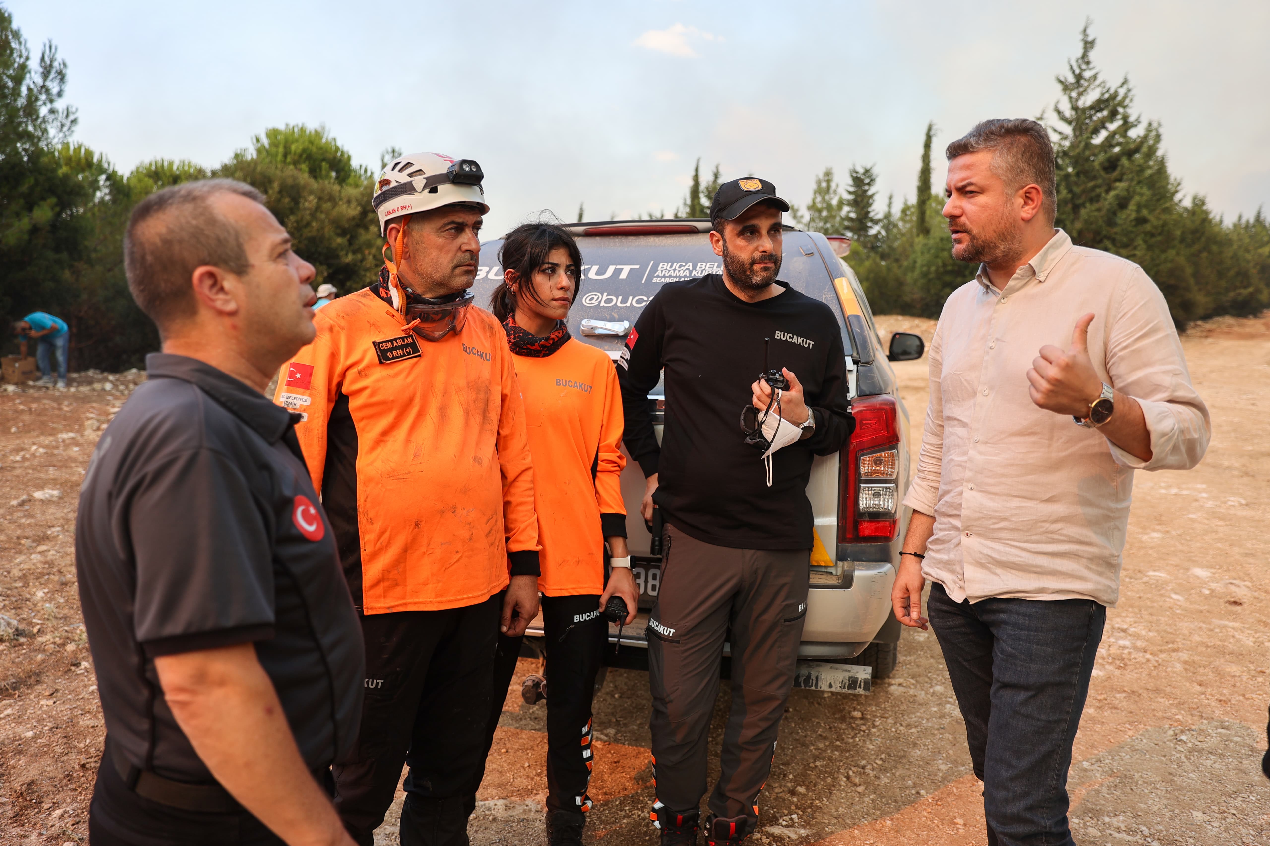 Sabah saatlerine kadar süren tüm çalışmaları yönlendiren Başkan Görkem Duman “Buca Belediyesi olarak bölgede 17 kişilik ekip, 5 araç ve 2 arazöz ile söndürme çalışmalarına katıldık. Su tankerlerimiz yangın boyunca tüm gün ve tüm gece bölgeye su taşıdılar. Ekibimiz yangının evlere sıçramasını engellemek için rüzgâra karşı yoğun bir mücadele gösterdi” diye konuştu.