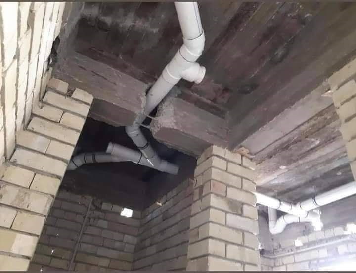 Fotoğraflarda; su ve pis su boruları için kolonların kesildiği, elektirik aksamı için kolonların oyulduğu görülüyor...
