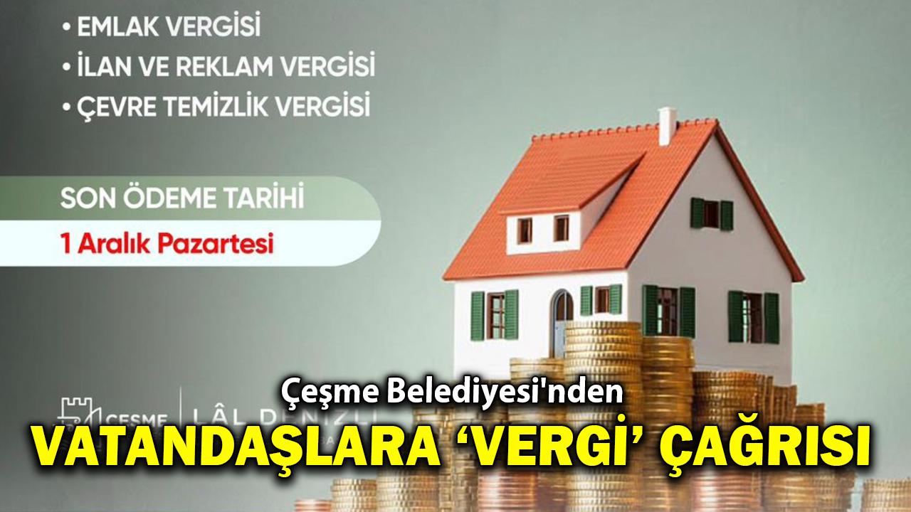 Belediyeden yapılan açıklamada, vergilerini zamanında ödemek isteyen vatandaşların, https://ebelediye.cesme.bel.tr/adresi üzerinden online olarak ya da Çeşme Belediye Binası ve Alaçatı Ek Hizmet Binası’nda bulunan veznelerden kolaylıkla ödeme yapabilecekleri belirtildi.