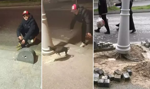 "KÖPEĞİ TEST ETMEK İÇİN YANINA YAKLAŞTIRIYOR"