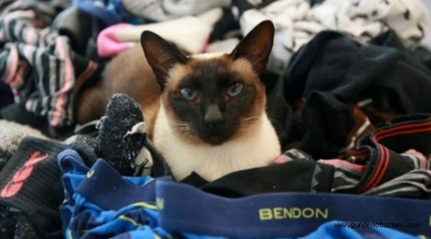 Siyam ve Burma kedilerinin karışımı olan Tonkinese türünden olan kedi Brigit, iki ay içinde Hamilton kentinde yaşadığı eve 11 çift iç çamaşırı ve 50'den fazla çorap taşıdı.