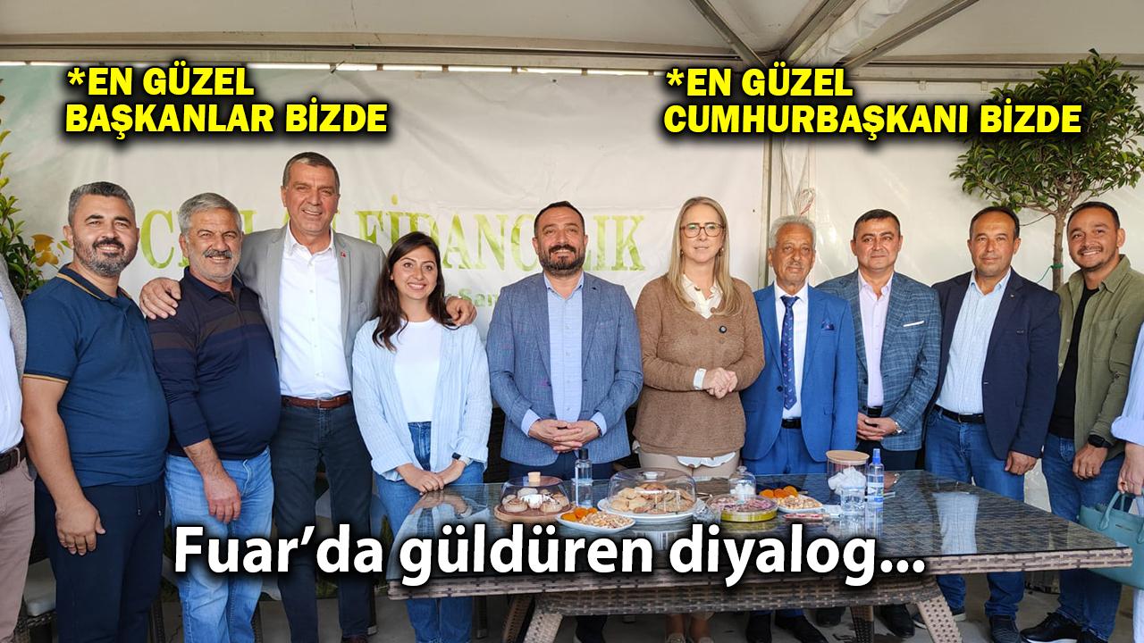 Masadakilerin kahkahalarla karşıladığı bu karşılıklı diyalog, fuarın en renkli anlarından biri olarak kayıtlara geçti.