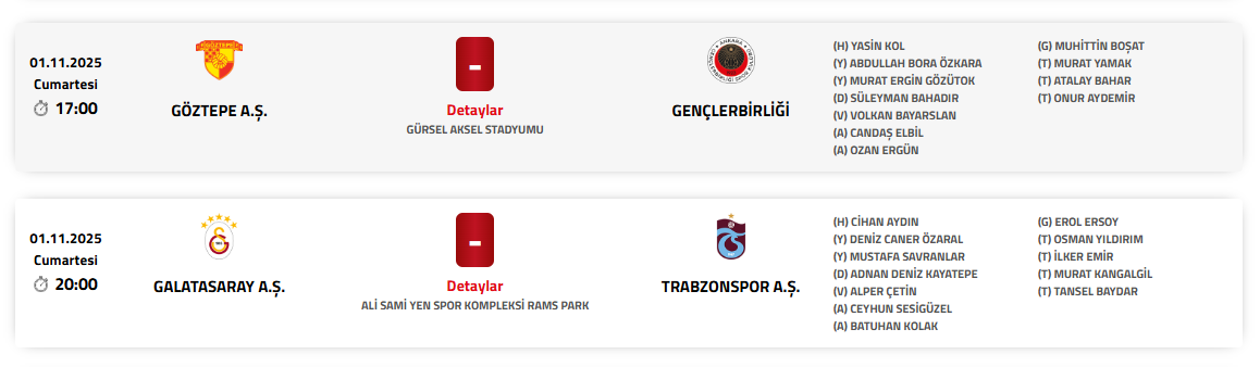 Türkiye Futbol Federasyonu'ndan yapılan açıklamaya göre Galatasaray-Trabzonspor maçında Alper Çetin görev yapacak.