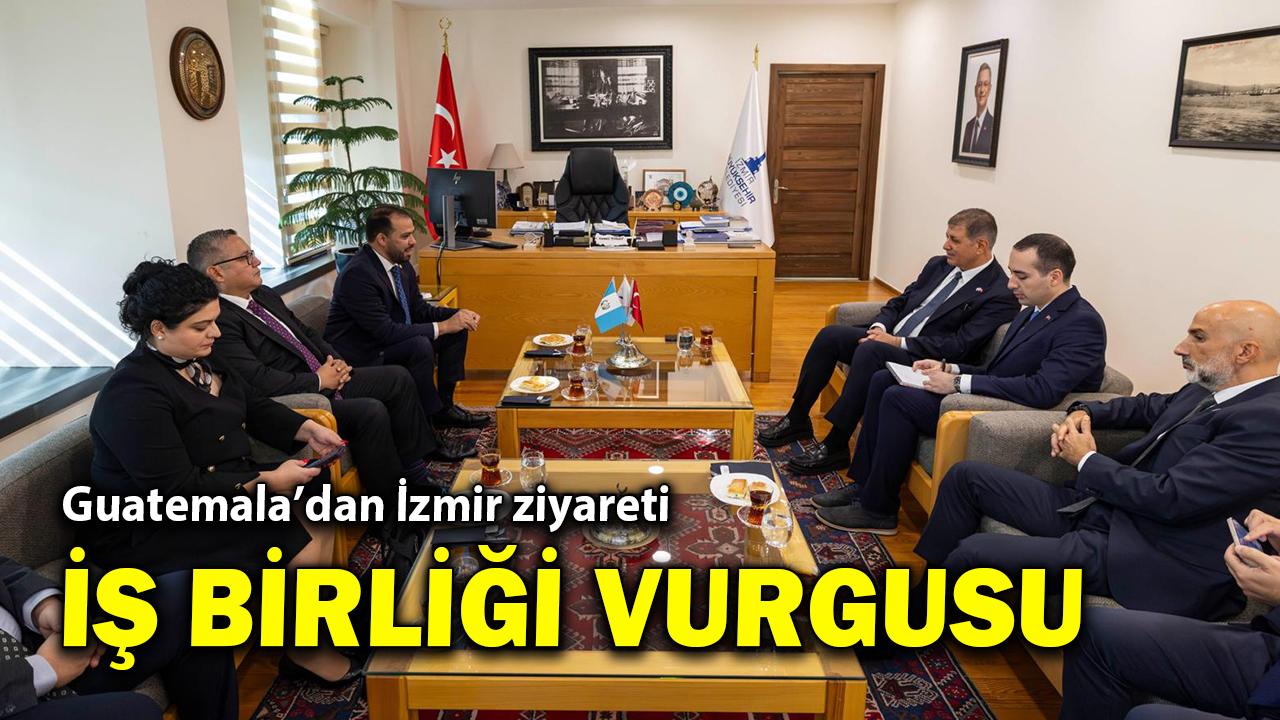 Guatemala’nın Ankara Büyükelçisi Eduardo Enrique Hernandez Recinos ve beraberindeki heyet, İzmir Büyükşehir Belediye Başkanı Dr. Cemil Tugay’ı ziyaret etti. Ziyarette; İzmir Büyükşehir Belediyesi Genel Sekreteri Zeki Yıldırım, Genel Sekreter Yardımcısı Övünç Özgen, İzmir Büyükşehir Belediyesi Dış İlişkiler Dairesi Başkanı Selin Sayın Kapancı ve İzmir Büyükşehir Belediyesi bürokratları yer aldı.