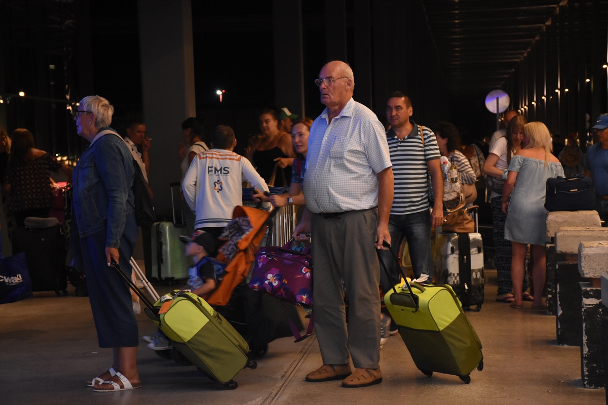 Burada İngiltere'den gelen yetkililer tarafından gerekli bilgilendirmeler yapılan turistler, daha sonra uçuş işlemlerini gerçekleştiriyor. Pasaport işlemleri tamamlananlar ise tahsis edilen uçaklara yönlendiriliyor.