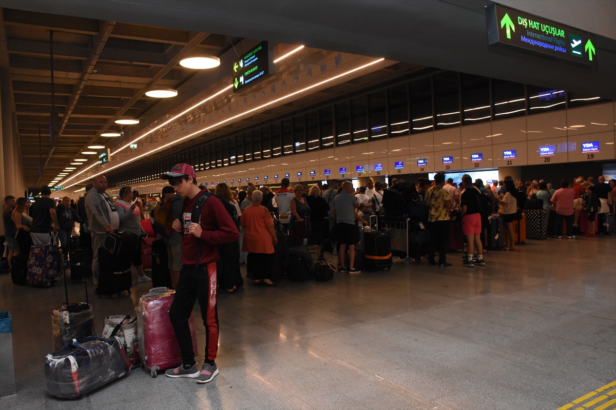 Sabah saatlerinden itibaren ülkelerine dönmek için bekleyen İngiliz turistler nedeniyle yoğunluk oluşan Dalaman Havalimanında, yolcular sivil havacılık bölümüne yönlendiriliyor.