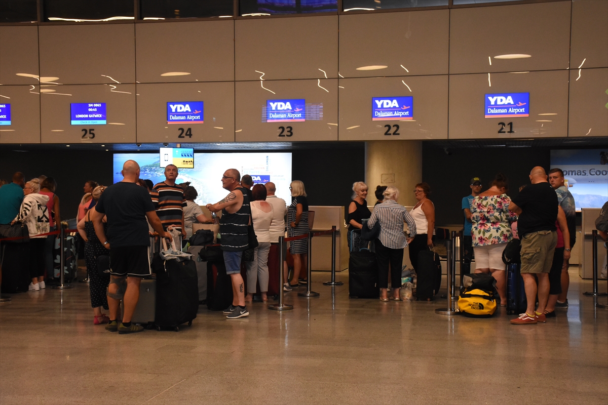 Dünyanın en büyük seyahat şirketlerinden İngiliz tur operatörü Thomas Cook'un iflasının açıklanmasının ardından, Muğla'nın bazı ilçelerinde tatillerini yapan İngiliz turistlerin ülkelerine dönmesi için İngiliz Sivil Havacılık Kurumunca görevlendirilen 12 uçak Dalaman Havalimanına geldi. Sabah saatlerinden itibaren ülkelerine dönmek için bekleyen İngiliz turistler nedeniyle yoğunluk oluşan Dalaman Havalimanında, yolcular sivil havacılık bölümüne yönlendiriliyor. Pasaport işlemleri tamamlananlar ise tahsis edilen uçaklara yönlendiriliyor.