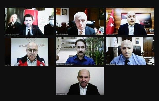 Sağlık Bakanı Fahrettin Koca, İzmir, Adana, Samsun, Bursa, Ordu, Gaziantep ve Konya il sağlık müdürleriyle videokonferans yöntemiyle toplantı yaptı.