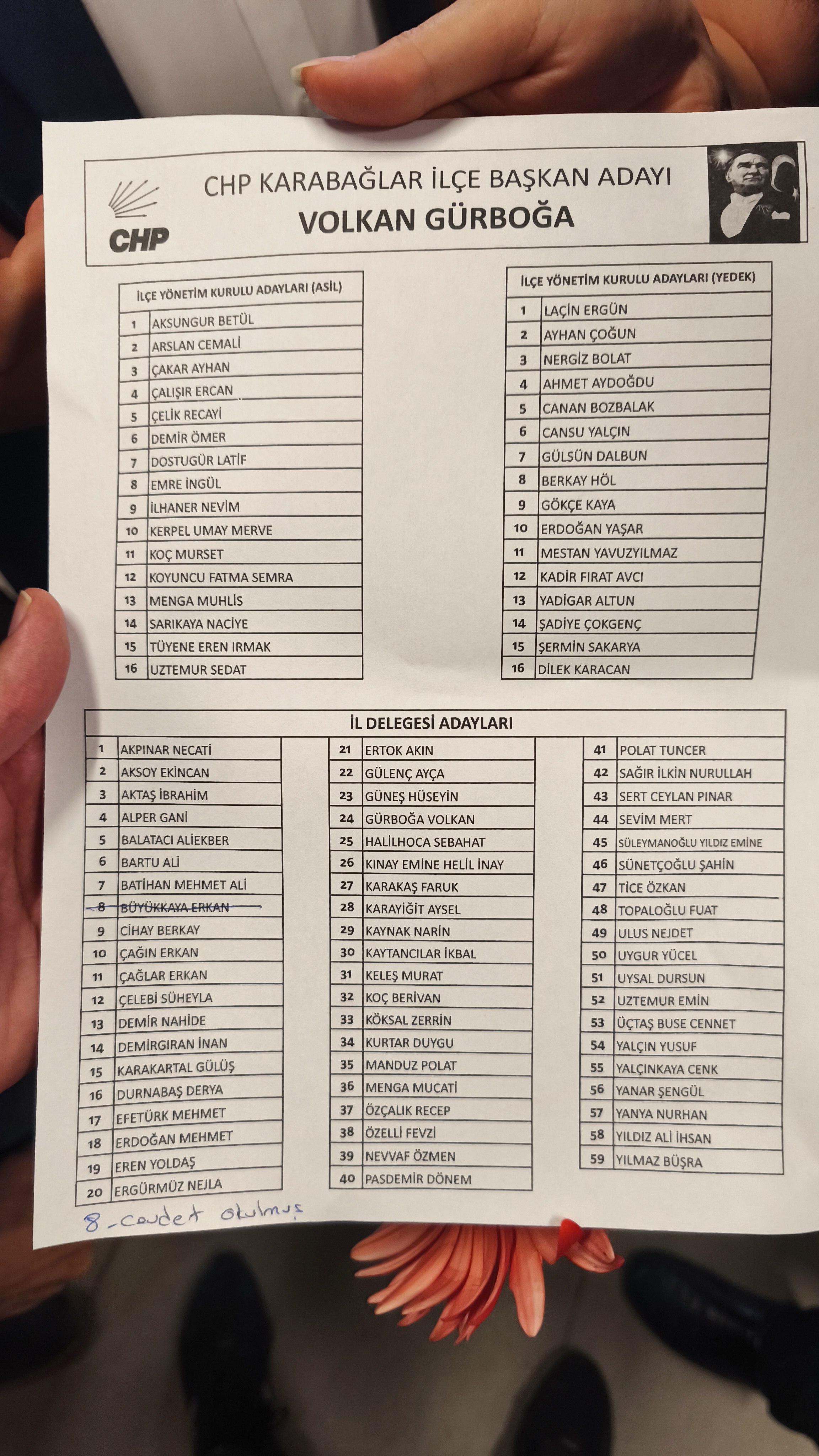 GÜNDEMOTUZBEŞ - Cumhuriyet Halk Partisi Karbağlar’da mevcut İlçe Başkanı ve İlçe Başkan Adayı Volkan Gürboğa'nın listesi belli oldu.