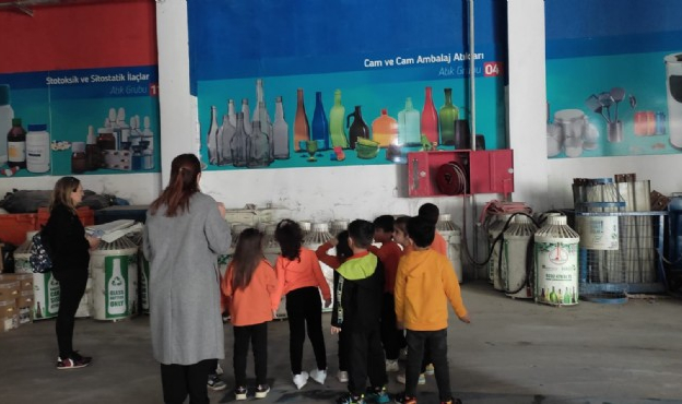 Karşıyaka Belediyesi 1. Sınıf Atık Getirme Merkezi’nde konuk edilen okul gruplarına verilen eğitimlerde geri dönüşümün anlamı, önemi ve kolay uygulama yöntemleri anlatılıyor.