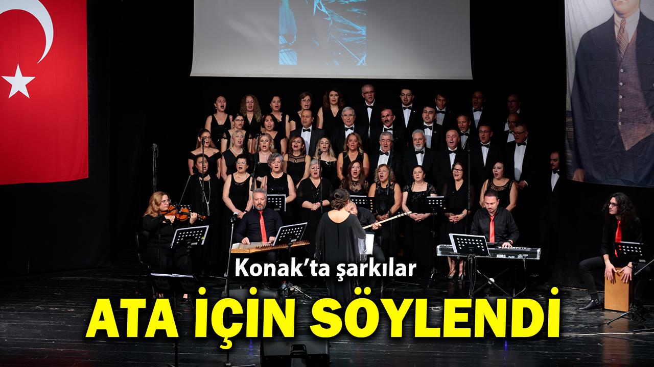 Konak Belediyesi Türk Halk Müziği Topluluğu, Ulu Önder Gazi Mustafa Kemal Atatürk’ün ebediyete intikalinin 87. yılı anma etkinlikleri kapsamında Konaklılara unutulmaz bir konser verdi. Güzelyalı Nazım Hikmet Kültür Merkezi’nde yoğun katılımla gerçekleşen “Sonsuz İz” adlı konserde, Atatürk’ün sevdiği şarkıları Şef Bahar Almaç yönetiminde seslendiren koro üyeleri, “Fikrimin İnce Gülü”, “Manastırın Ortasında”, “Kırmızı Gülün Alı Var” ve “Hoş Gelişler Ola” gibi 15 eserle Konaklılara duygu dolu anlar yaşattı. Konak Belediyesi Meclis Üyeleri, CHP Konak İlçe Yöneticileri, belediye bürokratları, siyasi parti temsilcileri, muhtarlar ve vatandaşlar konseri ilgiyle izledi.