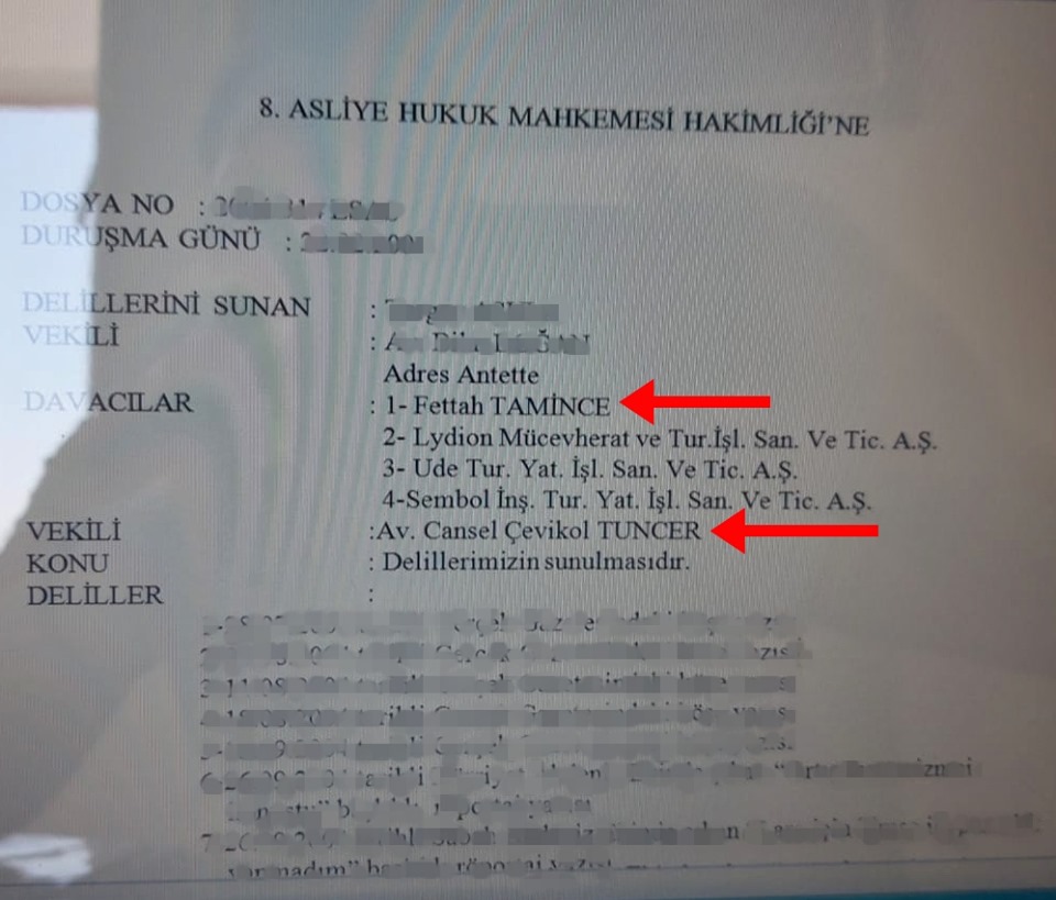 (Sayın Böcek'in baş danışmanı Avukat Cansel Çevikol Tuncer'in, Tamince'nin ve şirketlerinin avukatı olduğu belgesini ekte görebilirsiniz. Antalya 9. Asliye Hukuk Mahkemesi hakimliğinin bu resmi belgesidir. Dosya no, tarih, davalı ve davanın içeriği karşı tarafların mağdur olmaması için bazı isimler tarafımızdan buzlandırılıp yayınlanmamıştır. Aslı bizde bulunmaktadır. Eğer Savcılık isterse resmi belgeyi taktim edebiliriz.)