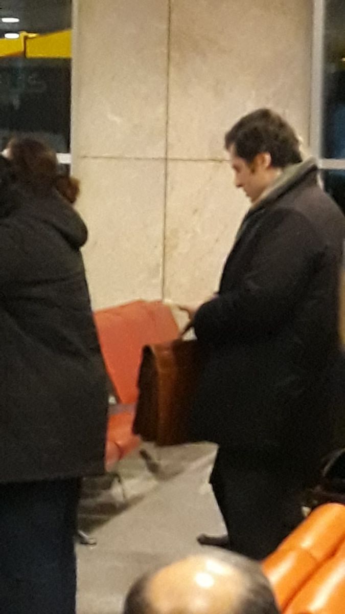 Kısa bir süre önce çekilen fotoğrafta İl Başkanı Yücel, İzmir'e dönmek üzere Esenboğa havalimanında uçağa biniş kuyruğunda olduğu görülüyor.