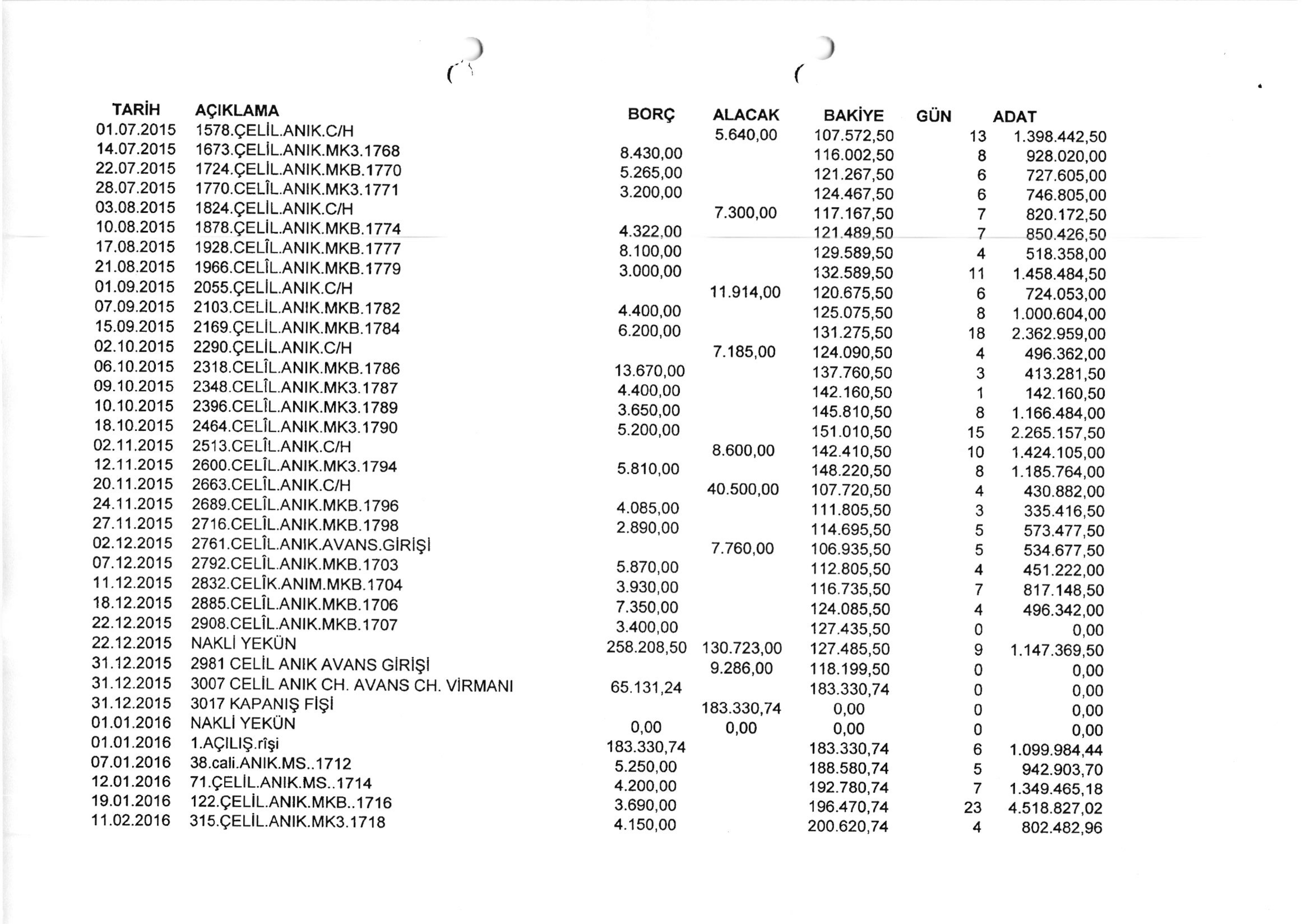 BİLİRKİŞİLERİN ORTAYA ÇIKARDIĞI, TAKSİCİ ESNAFININ AYAKTA ALKIŞLADIĞI İŞTE O CELİL ANIK AVANS ÇİZELGESİ: