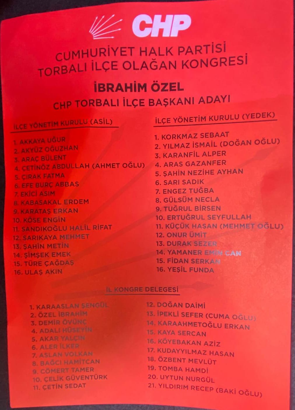 Mevcut ilçe başkanı Şengül Babacan'ın aday olmadığı kongrede Belediye Başkanı Övünç Demirin desteklediği İbrahim Özel kongrede aday olma kararı almıştı. Özel'in karşısına rakip çıkmaması sonrası ise Torbalı'da kongre tek adaylı gerçekleştiildi.