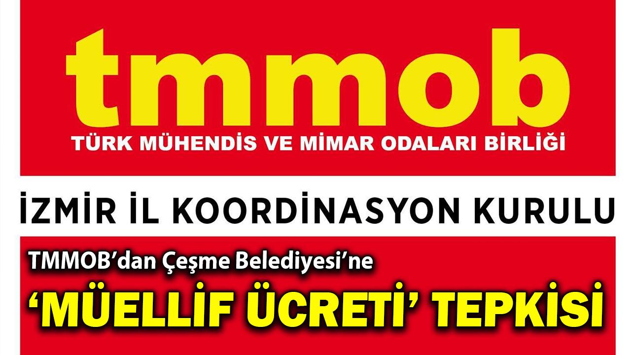 GÜNDEMOTUZBEŞ - TMMOB İzmir İl Koordinasyon Kurulu, Çeşme Belediyesi’nin mühendis, mimar ve şehir plancılarından “müellif kayıt ücreti” adı altında ücret talep etmesinin yasal olmadığını belirterek, uygulamanın derhal sonlandırılmasını istedi.