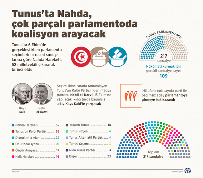 Tunus'ta parlamento seçimlerinin ilk resmi sonuçları açıklandı