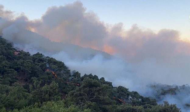 Yamanlar Karatepe mevkisinde önceki gün ormanlık alanda çıkan ve yerleşim yerleri ile sanayi sitesine sıçrayıp 3 mahallenin de boşaltılmasına neden olan yangına, günün ağarmasıyla ekipler havadan müdahale etmeye başladı.